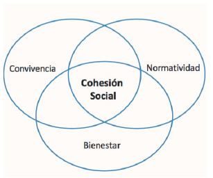 El término cohesión social es un concepto muy amplio en las ciencias sociales y que, aunque tiene muy diversas interpretaciones, siempre alude a los lazos que unen a una sociedad, al cemento que permite mantenerla unida y que permite que las personas puedan vivir juntas en relativa armonía (Pahl, 1991). El concepto ha tenido en la historia una interpretación cercana a otras categorías de uso en las ciencias sociales como el de «integración social», que tuvo relevancia en décadas previas, y el de «capital social», que ha tenido popularidad en décadas recientes (Bruhn, 2009).
