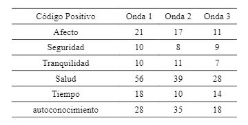 Con la declinación entre ondas de las opiniones positivas, disminuyen principalmente los códigos salud, afecto y autoconocimiento.