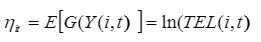 El predictor lineal de un modelo generalizado, en escala logarítmica, se define como: