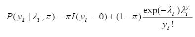I(y. = 0) representa la función indicadora, mientras que la probabilidad de observar un cero en la i-ésima área al tiempo t esta dado por Π+(1-Π)exp(-λit).
