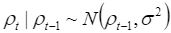 la tendencia temporal estructurada ρt se modela utilizando una caminata aleatoria de orden uno (rw(1)) distribuida como: