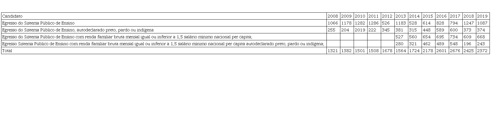 Este mecanismo, contudo, não é específico do curso de Música da UFRGS. Outras dez universidades federais6 ainda aplicam o Teste de Habilidade Específico para ingresso em cursos de Artes Visuais, Arquitetura, Dança, Design, Design de Moda, Música e Teatro. Sendo que cinco delas7 aplicam o teste específico com vagas reservadas nos critérios da Lei de Cotas.