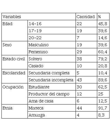 En agosto de 2021 se realizó, de la mano del MFD, el más reciente ciclo de formación de habitantes de Rancho Viejo en materia de educación ambiental. Tomando en consideración que en la localidad los adolescentes y adultos jóvenes leen, hablan, escriben y comprenden mejor el idioma español por su relativa escolarización en el sistema educativo formal, se decidió entonces en esta oportunidad incorporar un total de 48 individuos bilingües inscritos de manera voluntaria, donde 43 de los referidos completaron todos los cursos sin deserciones e inasistencias no justificadas (CMM, 2022). En la Tabla 1 se muestran los datos socio demográficos correspondientes a los participantes este ciclo de capacitación.