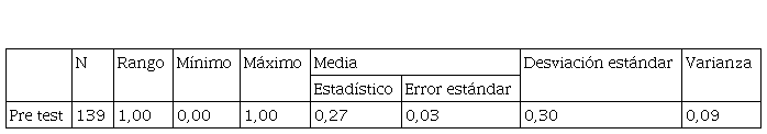 Como previa para el adecuado análisis comparativo e inferencial de los datos, se procedió al cálculo de medidas de tendencia central, dispersión y variabilidad en torno a los grados de cumplimiento reflejados por el MFD, en relación con las buenas prácticas ambientales. Además de calcularse la desviación y error estándar, se establecieron también los límites del intervalo de confianza al 95% (K = 1,96). En la Tabla 7 se presentan los resultados hasta este punto y que servirán para el proceso inferencial de contraste entre las mediciones dependientes pre y post test.