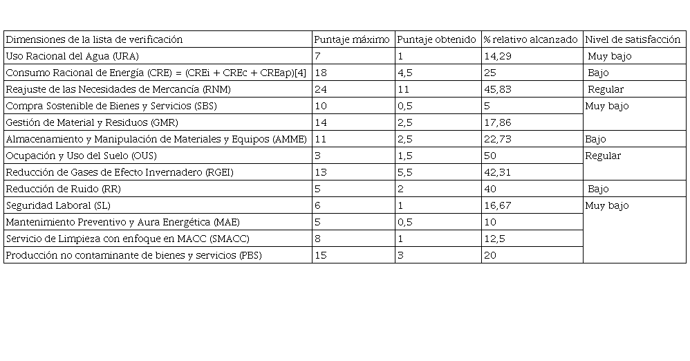 A partir de aquel primer lineamiento, las áreas de trabajo originales del programa fueron recontextualizadas tomando como guía de gestión general a las normas ISO 14001 (2015b) y 14050 (2020). Se destaca también una amplia extensión de elementos en el tópico primario de energía eléctrica, a la cual le fueron incorporadas subdimensiones de iluminación, climatización, bioenergía y aparatos eléctricos y electrónicos, según normas ISO 50001 (2018c) y 13065 (2015c). El programa educativo fue optimizado con la inserción conceptual de gestión de riesgos en el ámbito laboral y ambiental (ISO, 2018b), mitigación y adaptación al cambio climático a través de los sub tópicos de reajuste de las necesidades de mercancía, compra sostenible de bienes y servicios, producción agropecuaria no contaminante, almacenamiento y manipulación de residuos y materiales, reducción de ruido, GEI y otros elementos tóxicos; aura energética y servicio de limpieza (ISO, 2018a; 2019).
