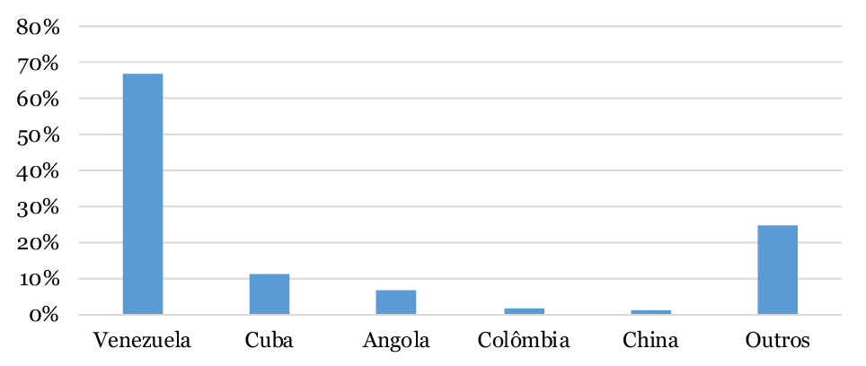 Según datos del Observatorio Internacional de Migraciones (OBMigra), en 2022, más de la mitad de las solicitudes de asilo en Brasil fueron realizadas por ciudadanos venezolanos, que buscaron protección humanitaria en suelo brasileño (CAVALCANTI et al., 2022). Los países que más se acercaron a esta cifra fueron Cuba y Angola, pero juntos no alcanzaron una quinta parte del total de solicitudes (gráfico 05). La mayoría de los refugiados venezolanos ingresaron a Brasil por la región fronteriza entre las ciudades de Santa Elena, en Venezuela, y Pacaraima, en Roraima, generando una situación compleja que requirió acciones coordinadas entre los ámbitos municipal, estatal y federal para acoger e integrar a los refugiados. migrantes que llegan al país.