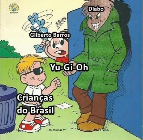 Gilberto Barros: Eu vi umas cartas de... como que chama? Yo gi... “Yo Gi Oh”. E aí eles estavam me falando… você sabe que assim ó, eu tive culpa mas não tive culpa, tanta culpa. As pessoas não entenderam o recado que eu quis dar através disso aí. Respeitando principalmente as crianças, foi só isso, exatamente isso. E te confesso, a carta do capeta que vendiam lá, foi uma “venda” entre aspas da imprensa japonesa, que veio aqui pro Brasil e eu peguei rapidamente porque ali havia aquela concorrência de pegar assuntos, aquele negócio todo. E a gente começou a chamar pessoas especializadas, aquele negócio todo e eles começaram a crescer o negócio. Até a tal da carta que mandava matar o pai, não é isso?