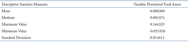 According to Table 2, from the second half of 2001 to the second half of 2012, banks constituted, on average, half-yearly provision equivalent to 0.83% of total assets. The maximum amount of the provision was approximately 16.4% of total assets, whereas the minimum amount represented a reversal of provision equivalent to 5.18% of total assets. The standard deviation of 1.4611% of total assets, above the average, indicates that there was great variability in the provision, motivated, in part, by the reversal mechanism. The median, below the mean, indicates an asymmetric distribution to the left of the series of provision.