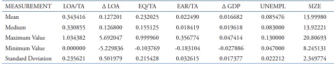 Glen and Mondrágon-Vélez (2011) conceptualize loan loss provision as expenses recognized in the income statement in contrast to reserves for losses on loans, which are being accumulated in the balance sheet. According to Bikker and Metzemakers (2004), these reserves will be used when the losses occur, being related to the quality of the loan portfolio and the economic fluctuations.