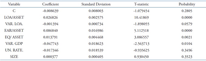 All the macroeconomic and accounting variables specific to the banks surveyed, with the exception of the unemployment rate and size, have significant effects on loan loss provisions according to Table 5.
