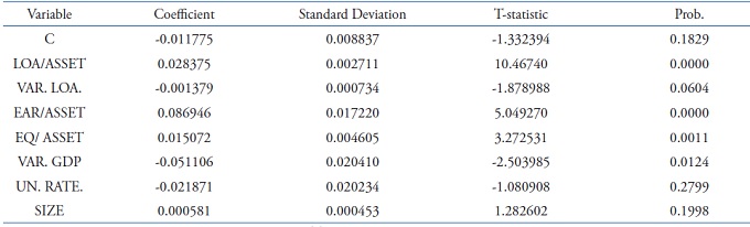 The accounting variables of the model are endogenous in nature. However, their inclusion is absolutely necessary, since the loan loss provision is by its nature, influenced by accounting factors, such as accounts receivables, earnings and shareholders’ equity capital. These variables end up functioning as control variables, helping to capture more adequately the relationship between the dependent variable and the independent critical variables of the study (GDP and unemployment).
