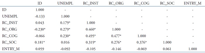 Table 2 shows the correlation matrix. The results show low risk of multicollinearity.