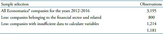 This study’s hypotheses were tested using a sample comprised of Brazilian publicly held companies with shares traded on B3 values with data available from the years 2012 to 2016. Companies from the financial sector and related fields were excluded due to structural, operational, and financial differences.