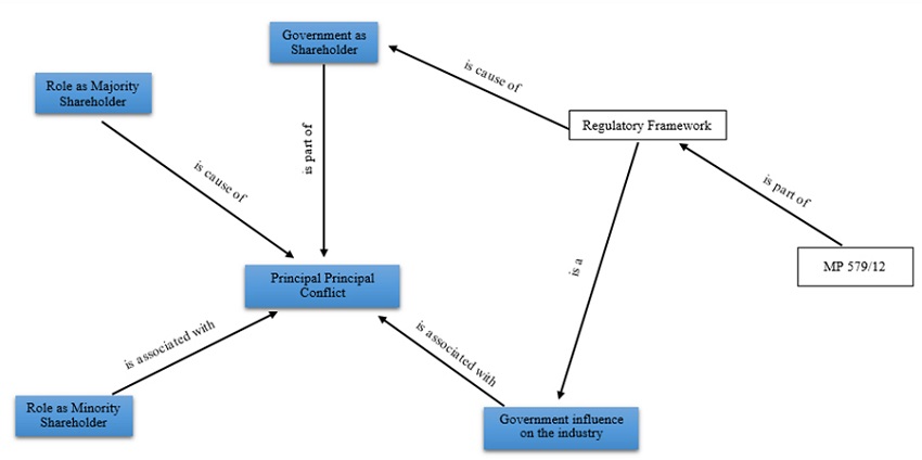 These results contradict the position of Arvate et al. (2013). The authors view regulation as an institutional arm created by governments with different characteristics to solve problems when there are market failures. With MP 579/12 just the opposite occurred. The measure generated a situation of potential conflicts arising from an environment of permanent uncertainty. Figure 3 illustrates the accentuation of principal-principal conflicts caused by the presence of the government as a shareholder in regulated environments.