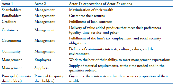 Agency theory is the leading theoretical approach to the relationships and conflicts that result from the separation of ownership from control. Such conflicts can involve many different actors related to the firm and their respective interests, as illustrated in Chart 1.
