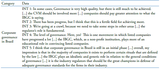 In the opinion of the interviewees, corporate governance in the Brazilian setting has improved since it was first implemented in companies, but there is still a long way to go. The majority of existing governance practices are limited to compliance with legislation, i.e. they do not focus on management excellence, on meeting international standards, or on the market.