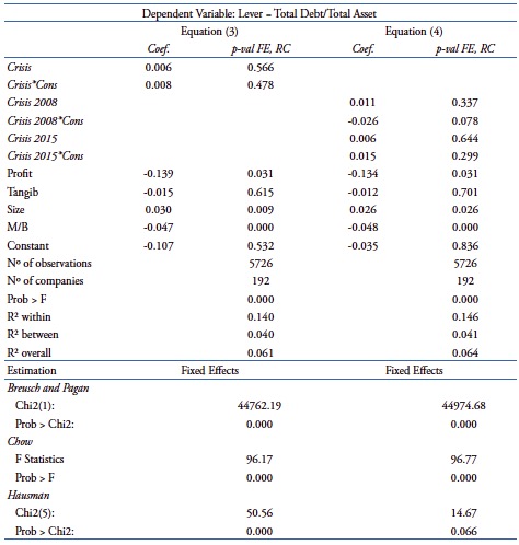 Table 6 presents the results of the impact of crises on corporate leverage: