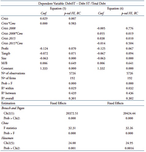 Regarding the impact of crises on the participation of short and long term debt in relation to total debt, there are ambiguous relationships pointed out by the literature: positive, with the argument that banks seek to mitigate risk and reduce the maturity of their loans and financing, thus increasing the proportion of short-term debt (Paula et al., 2013), or negative, on the grounds that the short-term debt tends to be reduced in times of crisis, impacted by the drop in bank credit supply, mainly from constrained firms, whose debts are mostly from bank resources due to limited access to alternative sources (Akbar et al., 2013; Bremus, 2015).