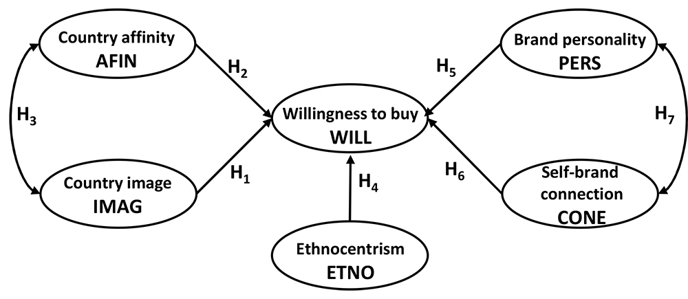 Our results did not provide complete empirical support for H1 (WILL ← IMAG), H2 (WILL ← AFIN), and H4 (WILL ← ETNO), contrary to the literature about COO - in fact, the results seem to show that the importance of COO depends on the brand.