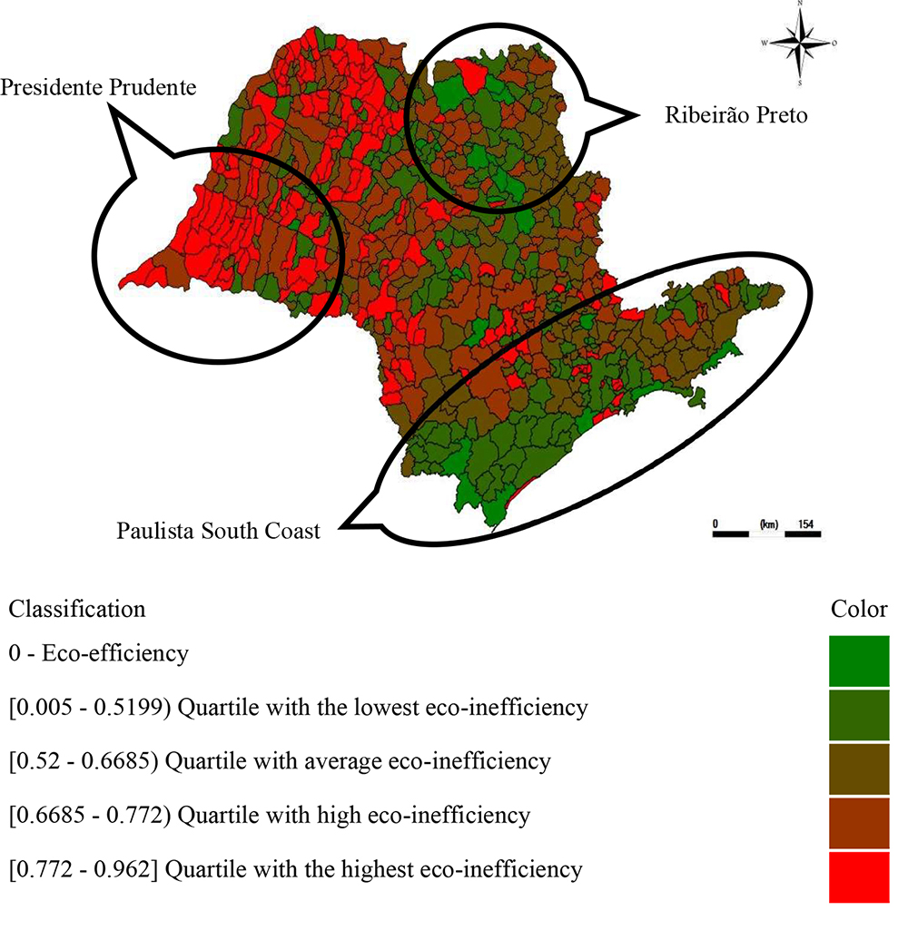 In this regard, the following questions remain open: a) Is it possible to increase production while reducing environmental impacts and the use of non-renewable natural resources? b) How is eco-efficiency distributed geographically in São Paulo?