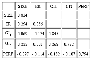 The adjusted R2, which corrects the effect of the sample size and the number of variables in the equation, present values considered average for the constructs GCI, SIZE and GI2 (adjusted