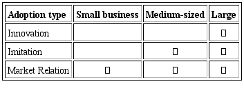 On the other hand, adoption by imitation would be compatible with both large and medium industries, but not with the small-enterprises, because of their unique characteristics (Battisti & Perry, 2011; Oliveira & Serra, 2010). Industries with the provision of fewer resources (whether financial or operational) are more likely to lack formal planning, to have difficulty in attracting investment, and of being more susceptible to a local economy solely. Thus, they are more unlikely to merely copy management standards or practices based on success from other companies.