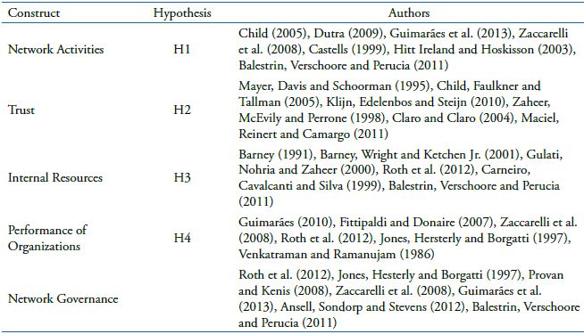 For the investigation undertaken in this study, in accordance with the theoretical framework presented, hypotheses were prepared to be tested with the support of statistical techniques and tools. The hypotheses formulated for this piece of research are the following: H1: network activities influence positively the construction of effective network governance. H2: trust between the bodies forming the network has a positive relationship to the effectiveness of the network governance.H3: internal resources of the network entity influence positively the effectiveness of network governance. H4: An effective network governance contributes positively to improve the performance of the companies in the grouping.