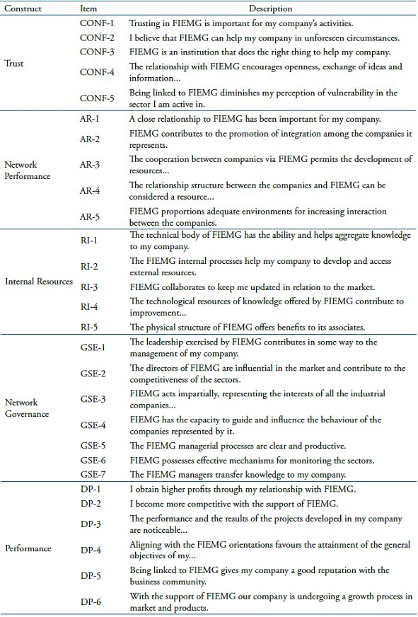 Following this line of reasoning, the objective of this article was to evaluate the antecedents of the effectiveness of network governance of the Federation of Industries of the state of Minas Gerais and its influence on the performance of the group of companies involved. More specifically, the objectives were to check the influence of the antecedents of network activities, trust and internal resources on the effectiveness of network governance; and check the impact of network governance on the performance of the companies involved.
