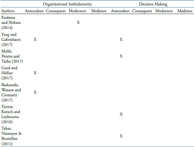 First, the question of research was elaborated as, “what is the role of risk in the development of organizational ambidexterity and strategic decision making?” In order to answer this question, we conducted a research with several academic publications in the main scientific databases, ranging between 1991 and 2017.