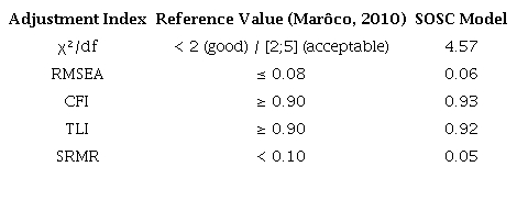 The results of the indexes that assessed the SOSC model adjustment quality are shown in Table 3.