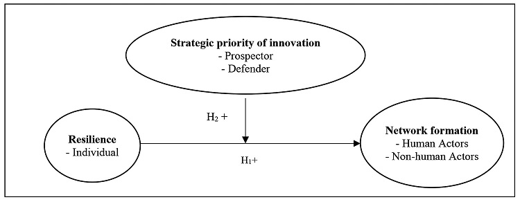 H2: The strategic priority of innovation moderates the relationship between manager resilience and the formation of networks of both human and non-human actors.