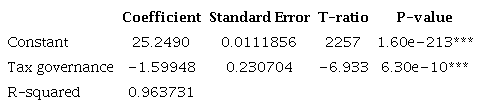 These results show that tax governance continues to show significance, and the R-squared value of 0.9637 reveals that the omission of variables did not influence the model’s results in a relevant way.