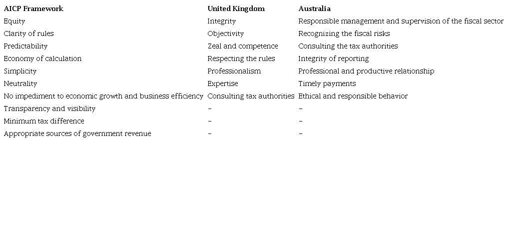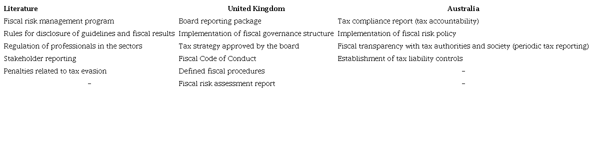 Deloitte (2015) published a press release summarizing several national practices aimed at a more effective tax governance structure, mentioning the cases of countries such as New Zealand, Australia, and the UK, which seek to implement “voluntary corporate tax codes of practice to deal with companies that routinely undertake aggressive tax planning” (Deloitte, 2015, p. 2). Table 2 presents, from the compilation of various codes and reports, the main principles that tax governance is designed to preserve.