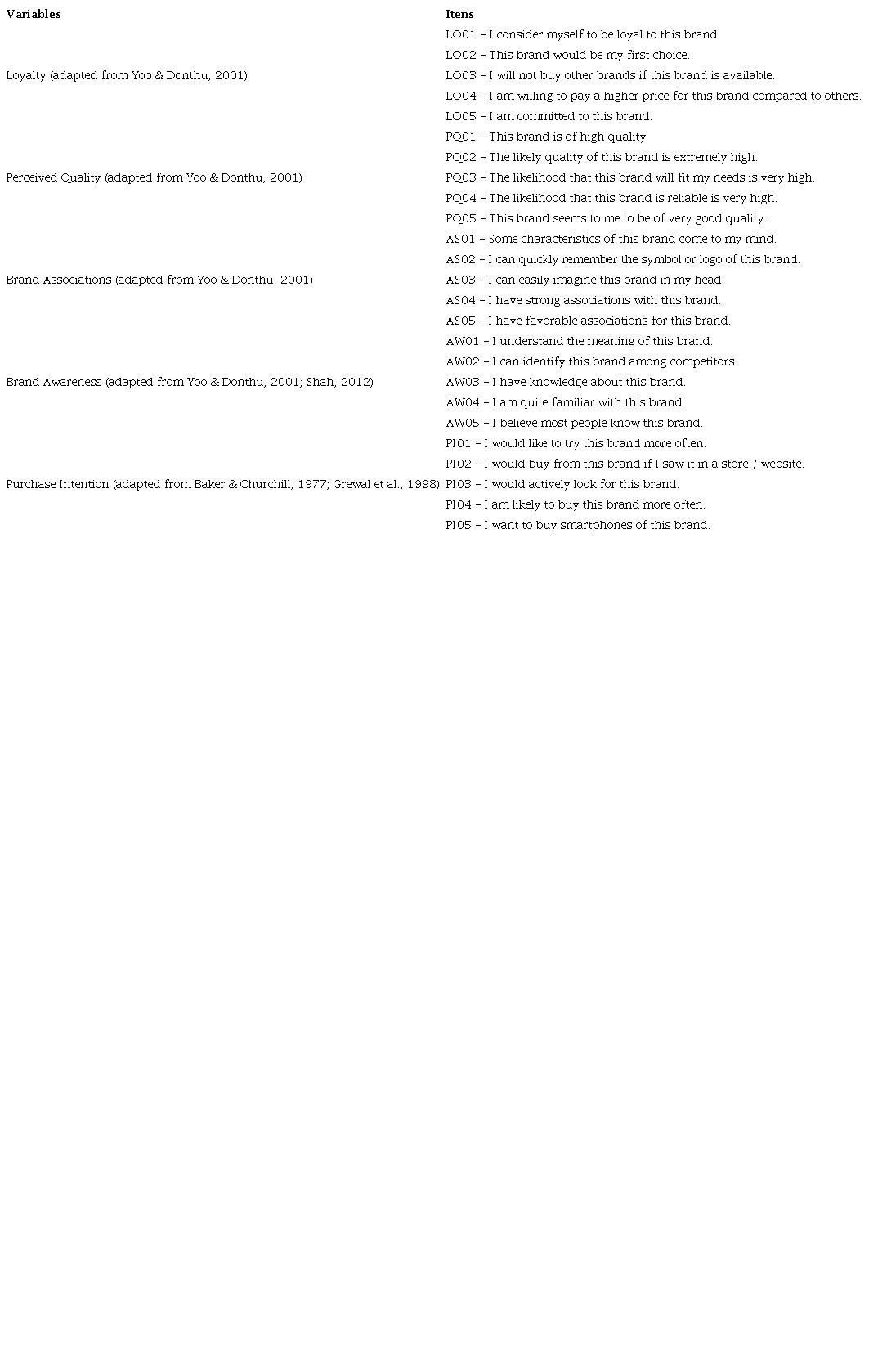 Studies, such as Yoo and Donthu (2001), argue that brand awareness and associations should be combined according to their results. However, both variables have different concepts and different consumer behaviors emerge. Brand awareness acts as a variable that enables consumers to have associations with a brand, which would not be possible without this prior knowledge and familiarity (Foroudi et al., 2018).