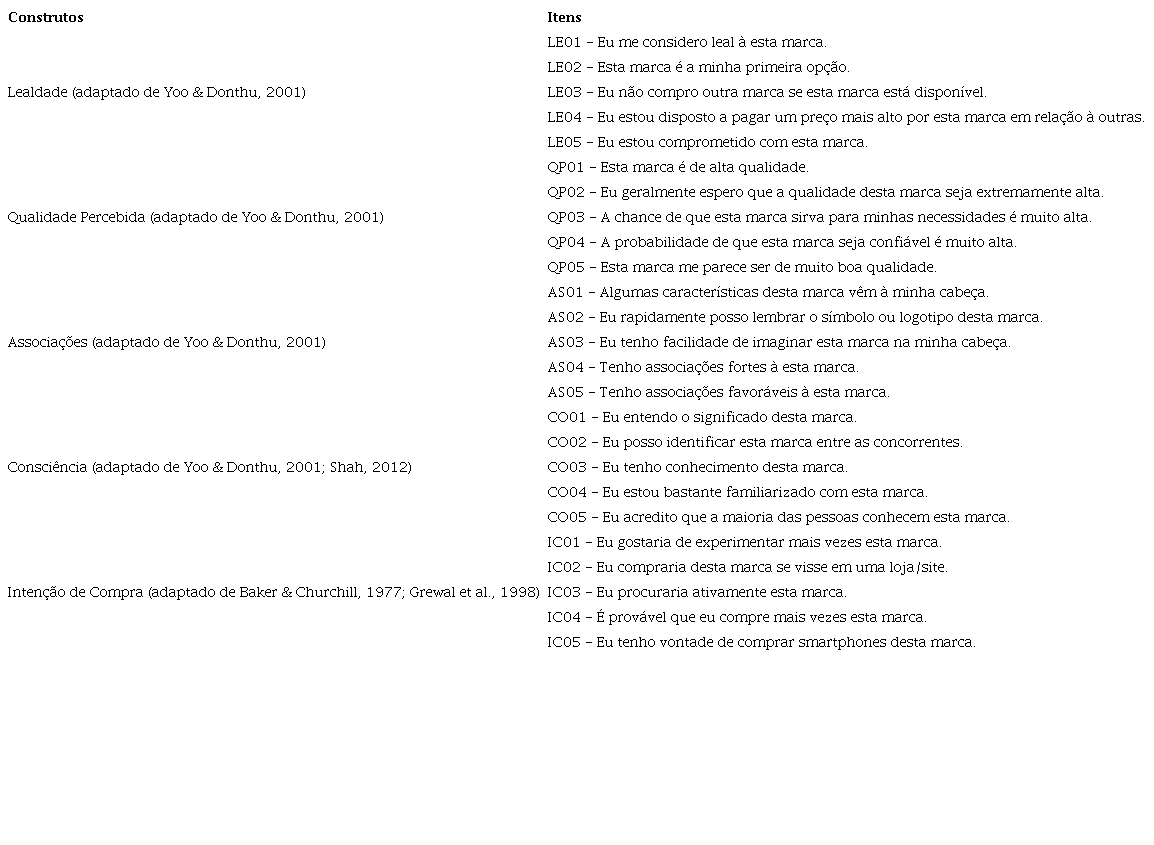 PALAVRAS-CHAVE: Consciência da marca, Valor da marca, Intenção de compra, Smartphones.