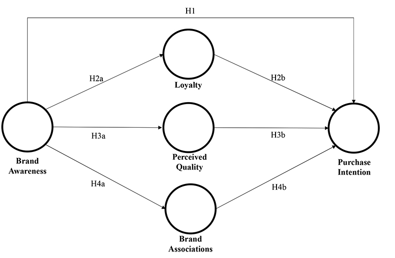 Therefore, brand awareness itself might not be enough to increase the consumers’ purchase intent towards unknown brands. On the other hand, this construct may allow other positive consumer relationships with the brand to appear, such as perceived quality, brand loyalty, and brand associations (Grewal et al., 1998; Pappu, & Quester, 2016; Foroudi et al., 2018) and thus generate the purchase intention. Therefore, this study aimed to analyze the antecedent role of brand awareness in the other dimensions of consumer-based brand equity and its impact on consumer purchase intention.