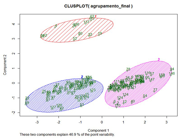 Due to the exploratory character of this research, cluster and decision tree analyses were carried out (Oliveira, 2004). For both analyses, the RStudio software and the CAR, C5.0, and cluster libraries were used. The decision tree is a technique used for evaluating various alternatives, by calculating the expected value for each alternative, presenting, as its main advantage, the compilation of compact structures and high legibility, so that its results are easily understandable (Halmenschlager, 2002).