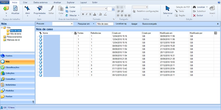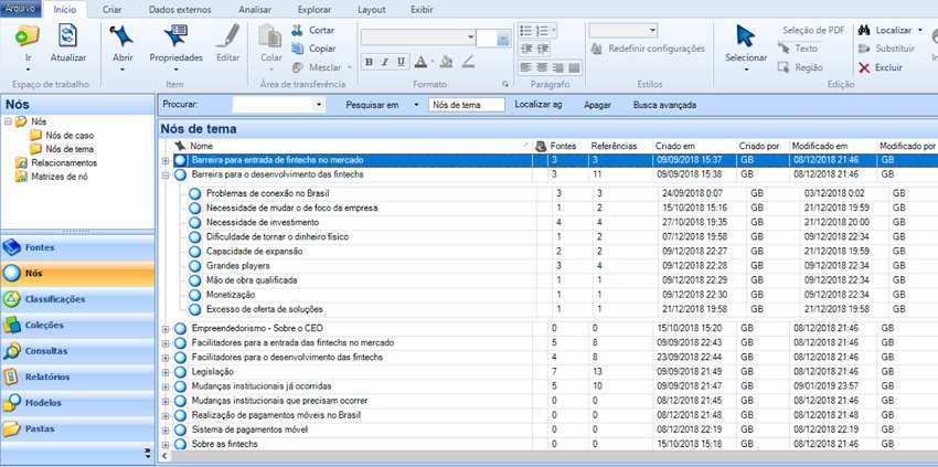 The interviews and talks were recorded and later transcribed. The transcripts were imported into the NVivo software, which supported the data analysis process, in which we used the open coding technique. Initially, the materials were coded in “case nodes”, and for the fintechs, each file was named with a code (01 to 09) followed by the name of the company - Ex .: 01_Fintech1 - while the Fintouch talks were classified according to the player represented in that speech - Ex.: Central Bank, CVM, ABFintechs, among others. The organization of the data (case nodes and sources within NVivo) is shown in Figure 3.