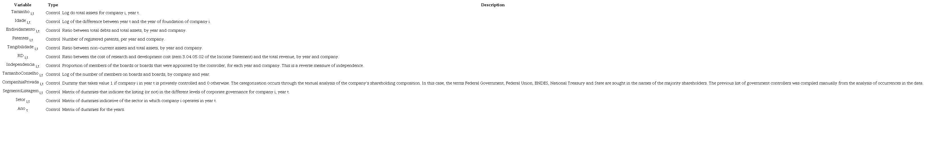 On the right side of equation 2, Controls is a matrix containing company characteristics that, according to the literature, can affect the demand for academics to compose the board and the executive board. The respective definitions are found in Table 2.
