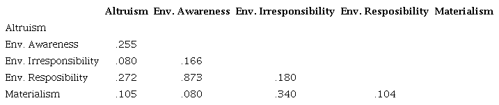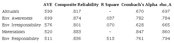 KEYWORDS: Environmental responsibility, environmental awareness, altruism, materialism, social desirability.