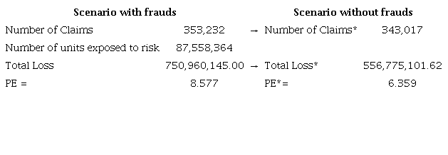 According to the actuarial insurance policy pricing theory, the prospective definition of the insurance premium value is expected to express the future evolution of claims (Bowers et al., 1997; Klugman et al., 2012). However, the prior claims experience of an insurer is usually used to form such an expectation (Kaas et al., 2008). Therefore, a portfolio with large fraudulent claims expenses is expected to have significantly higher premiums than a theoretical optimal value, when compared to a portfolio with little or no fraud experience (Boyer & Peter, 2020; Contador, 2011). This evaluation will be made through the Credibility Theory, broadly disseminated in the actuarial literature (Pai et al., 2015).