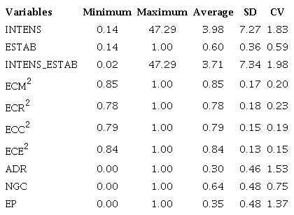 The statistics of the control variables indicate that most companies do not have securities traded on the American stock exchanges (ADRs), as the average is below 0.5. In addition, there is a predominance of private companies in the sector, which differ in respect to corporate governance.