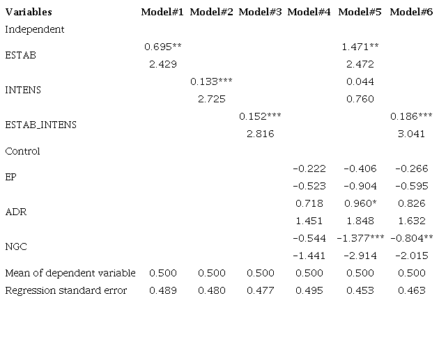 Then, Logit Regression Analysis was performed to test the effects of board interlocking stability and intensity on the similarity of accounting choices.