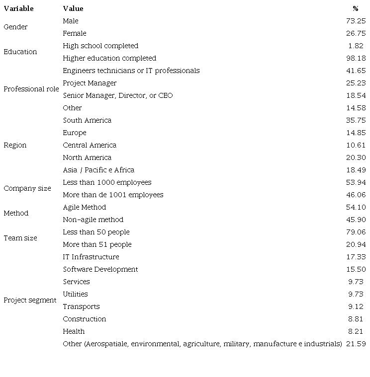 The sampling was based on a systematic random draw for the participants' choice. The professionals' chosen group is called "Project Management Community," with more than 400.000 members on LinkedIn, composed of project managers of various nationalities.