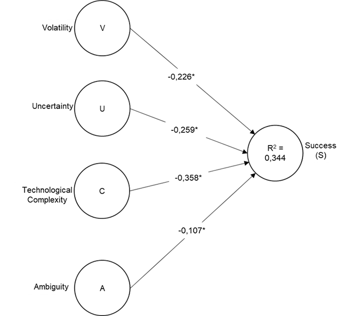 Thus, our findings show that adverse environmental characteristics are detrimental to the project's success. Therefore, the actions required by managers can minimize or circumvent these effects. Adopting the most appropriate project management method may be the mechanism for mitigating the volatility effect.