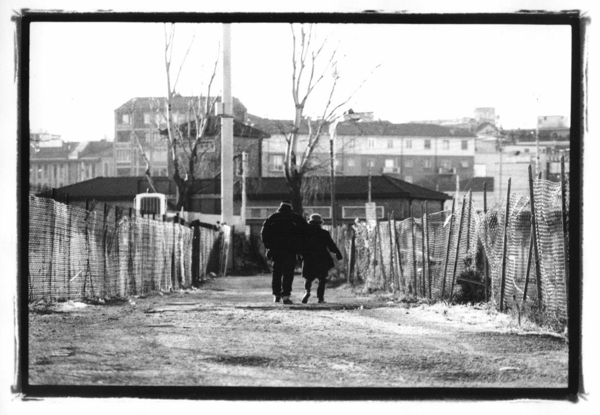 Due senza fissa demora escono dal Dormitorio Carracci chiuso nel Dicembre 2005 per fare spazio ai binari dell’alta velocità in costruzione. Foto di Armando Giorgini, 2005