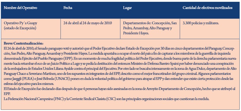 La aparición del EPP resultó por tanto habilitante para un incremento de la intervención de agencias estadounidenses y de la reactivación de programas y acuerdos firmados a comienzos de los años sesenta (como el Plan Umbral y la Iniciativa Zona Norte ya mencionados), que vinieron a confluir con representaciones heredadas de otros tiempos - resignificadas y retroalimentadas por las empresas comunicacionales- subyacentes en la subjetividad de gran parte de la población del Paraguay.