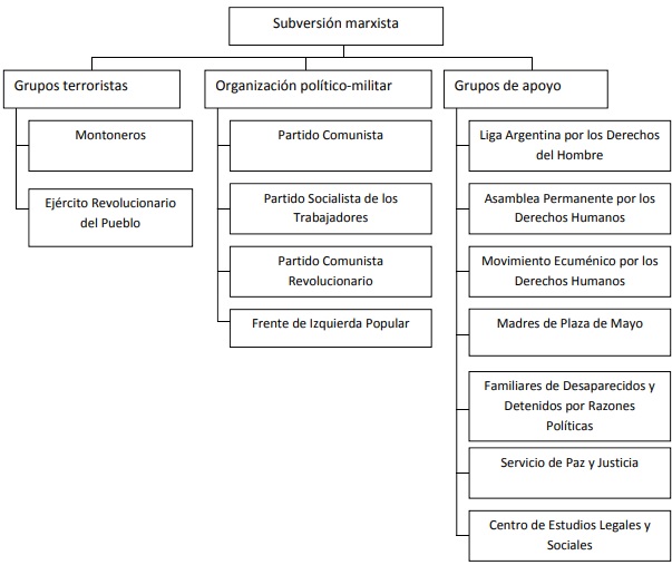 Estos diagnósticos son acompañados por un cuadro que reproduce Armony, y que no deja lugar a dudas sobre el lugar que ocupaba la lucha por los derechos humanos, ni sobre cuáles eran sus objetivos, según las fuerzas represivas.