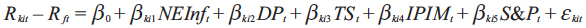 NEInft, DPt, TSt, IPIMt y S&Pt son las F innovaciones de los factores de riesgo macroeconómico en el mes t.
