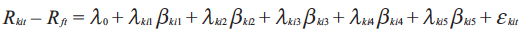 (3)Donde: Rkit es la rentabilidad media de la cartera k formada por los hedge funds que siguen la estrategia i en el mes t.